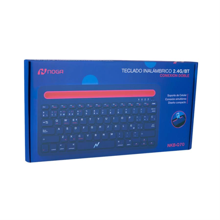 NKB-Q70 | Teclado Slim Inalámbrico BT/2.4G con Soporte Multitarea¡Llevá tu productividad y entretenimiento al siguiente nivel con el NKB-Q70! Este teclado slim inalámbrico es perfecto para quienes buscan comodidad, versatilidad y un diseño elegante. Su conexión dual y soporte multitarea lo hacen ideal para tu espacio de trabajo o para disfrutar de tus dispositivos favoritos sin cables.